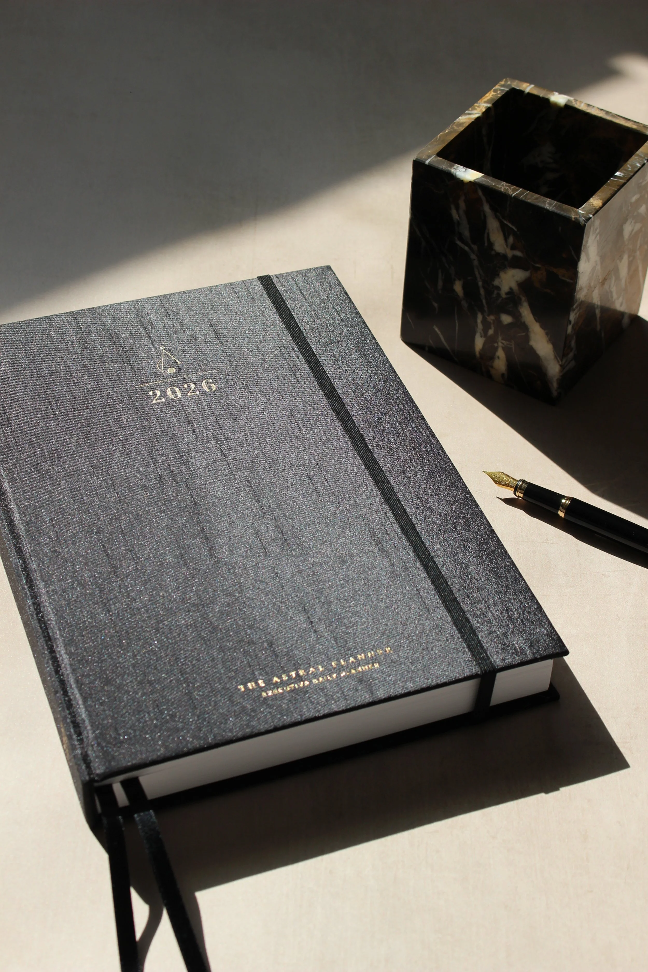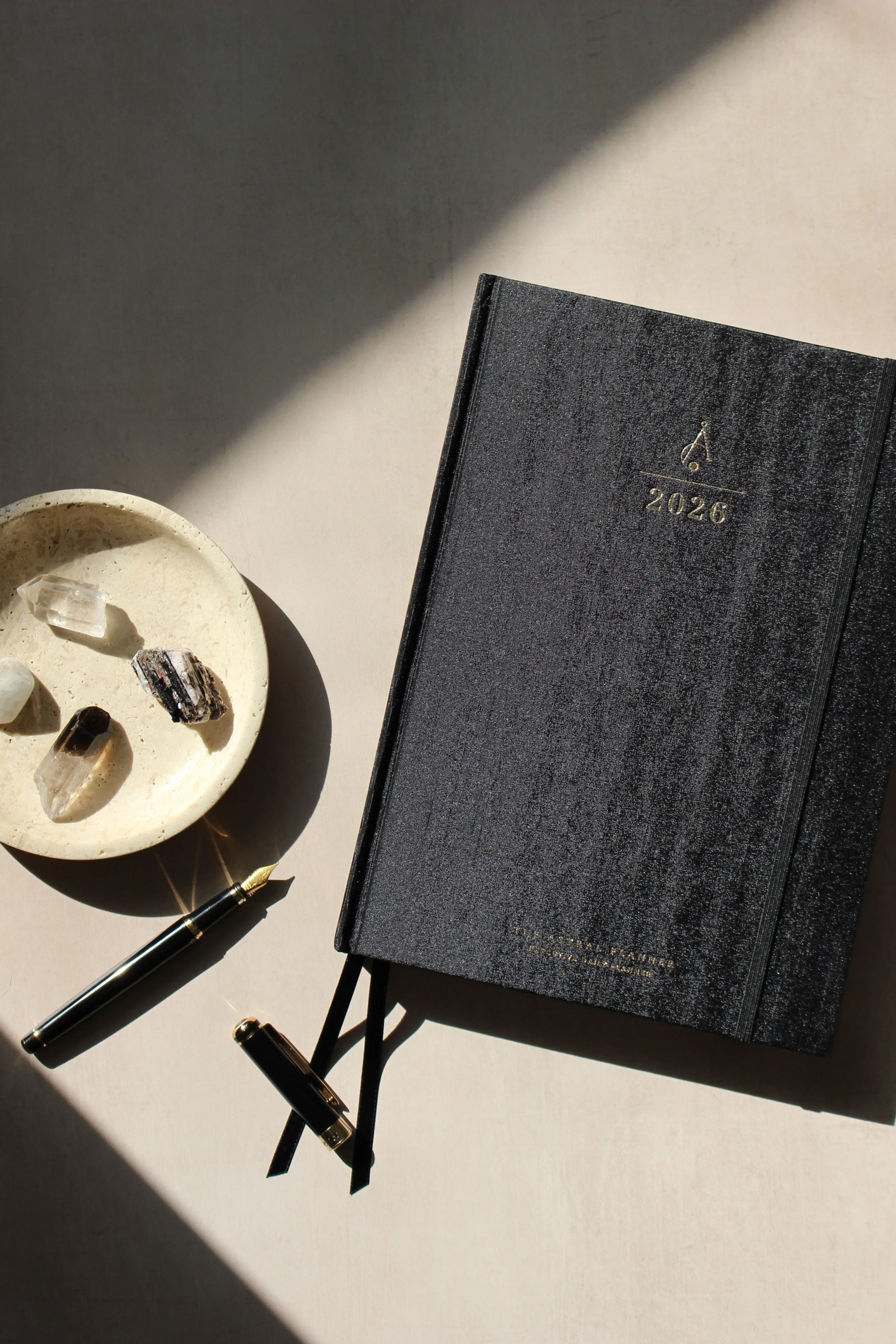 Our signature creation and best-seller since 2020. This year’s edition debuts a new artisan textile—an architecturally structured taffeta infused with the lustrous shimmer of silk and ethically woven without harm to silkworms. Cut from a singular, unified bolt, yet each cover reveals its own naturally occurring grain, ensuring each planner is truly one of a kind. The planner destined to guide you through 2026 will be as distinctive as the personal evolution it’s designed to support.
